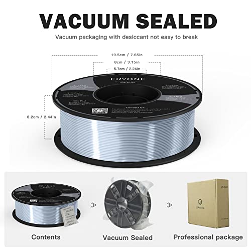 Specification: ERYONE Silk PLA Filament 1.75 mm, 3D-Drucker Filament PLA, 0,03 mm, 1 kg/Spule, Silk Silber