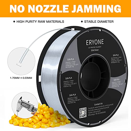 ERYONE Silk PLA Filament 1.75 mm, 3D-Drucker Filament PLA, 0,03 mm, 1 kg/Spule, Silk Silber