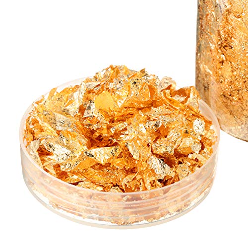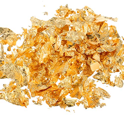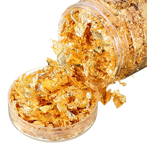 15 Gramm Gold Blatt Flocken Gold Folien Flocken Gold Metallisch Folien Flocken für Vergoldung, Malerei, Handwerk Nägel und DIY