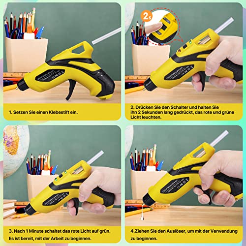 BREITE ANWENDUNG: Diese Heißklebepistole mit Klebestiften ist ein ideales Werkzeug für verschiedene Heimwerker wie Kunsthandwerk, Heimwerker, Weihnachtsdekoration, Geschenke. Es kann gut mit Kunststoff, Glas, Papier, Baumwolle, Stoff und anderen Materialien arbeiten. Es klebt sofort und kühlt super schnell ab, das Klebepistolen-Set ist perfekt in Haushalt, Schule und Büro zum Basteln, künstlerischen Gestalten oder Reparieren geeignet.