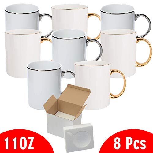 Specification: Set von 8 313 ml gemischten Gold- und Silberrand und Griff – Keramik-Sublimationstassen – Professionelle Sublimations…