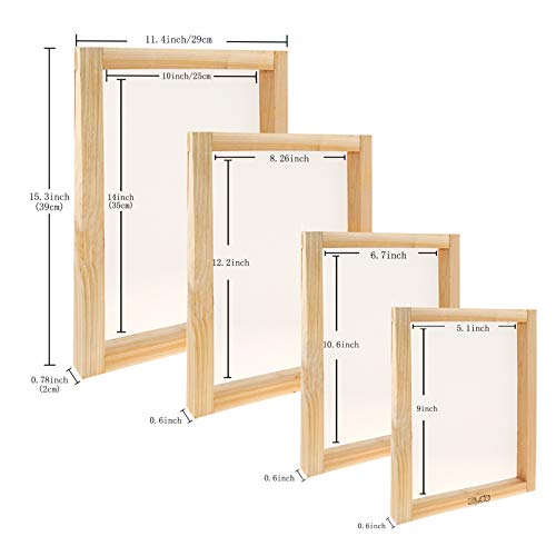 Siebdruckrahmen: 4 verschiedene Größen von Siebdruckrahmen (10 x 14 Zoll, 8,2 x 12,2 Zoll, 6,7 x 10,6 Zoll, 5,1 x 9 Zoll) mit 4 Arten von Siebdruckrakeln erfüllen Ihre unterschiedlichen Druckanforderungen