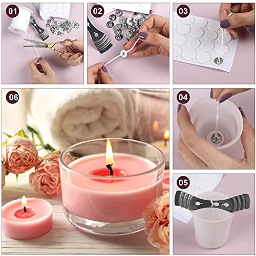 【Einfach zu bedienen】Der candle wick lässt sich leicht in verschiedene Größen schneiden, ist leicht zu begradigen und bricht nicht. Beachten Sie, dass Sie vor dem Einfüllen des Wachses in die Tasse das Wachs oder den Kleber unten verwenden müssen, um das Stück zu fixieren.