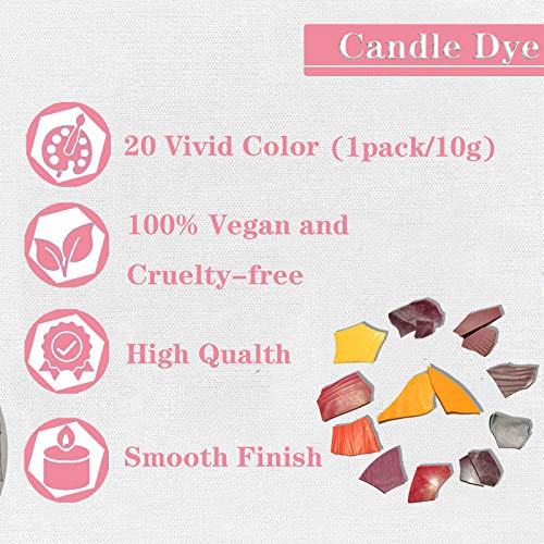 🎨Kerzenfarbstoff: Unser Sojabohnenwachsfarbstoff ist natürlich, nicht reizend, tierfreundlich, nicht polierend und hautschonend. Der Sojawachsfarbstoff ist vollständig löslich und kondensiert nicht, und die Oberfläche der Kerze blockiert oder ändert ihre Farbe im Laufe der Zeit nicht.