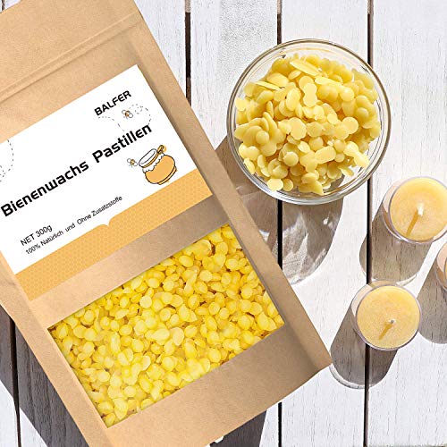 Specification: BALFER 100% Reine Bienenwachs Pastillen 300g, für Kosmetik, Kerzen, Cremes, Salben, Seifen, Bienenwachstücher…